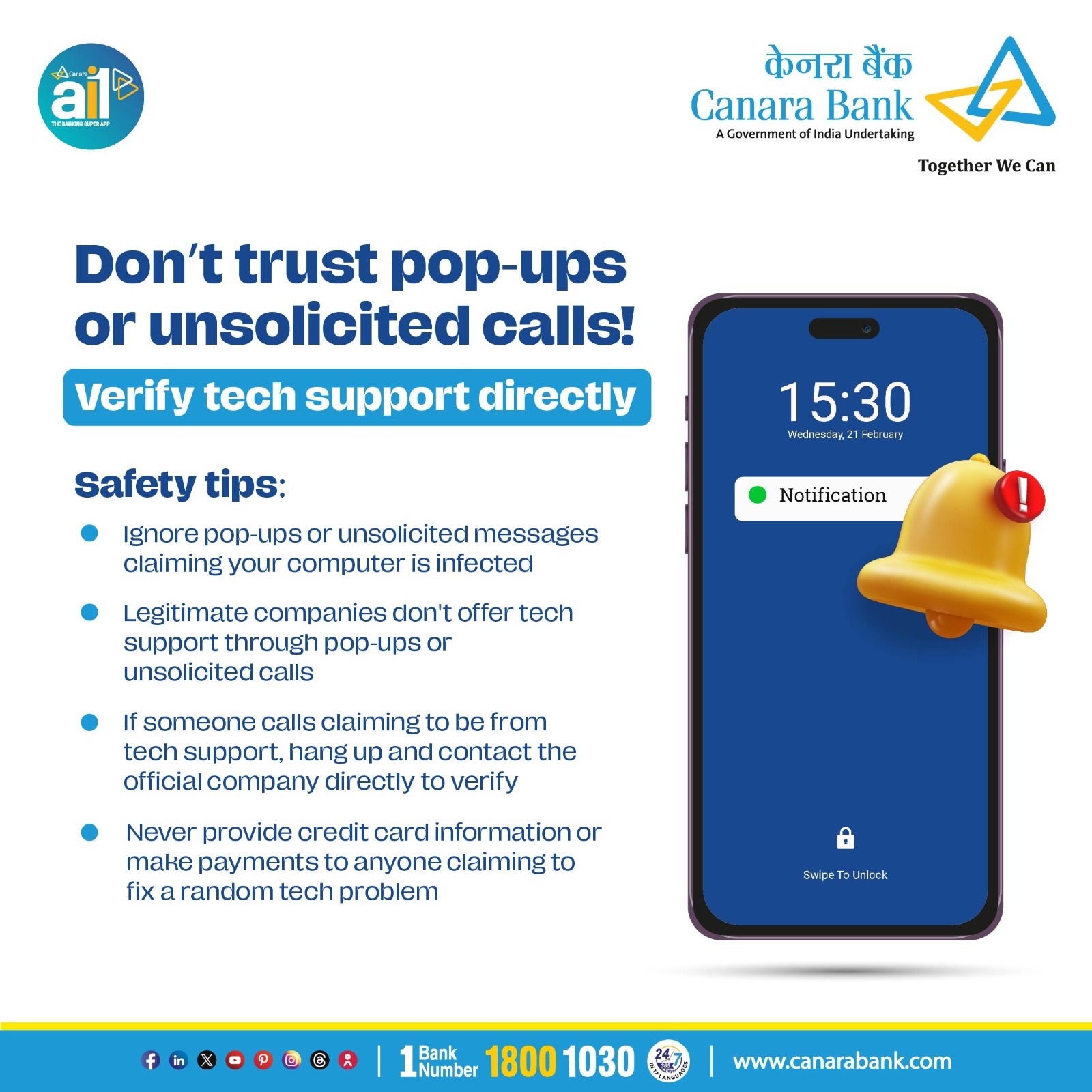 - Beware of pop-ups or unsolicited calls