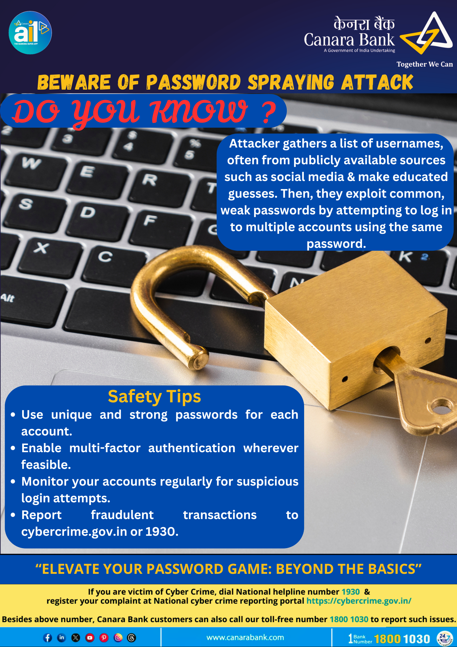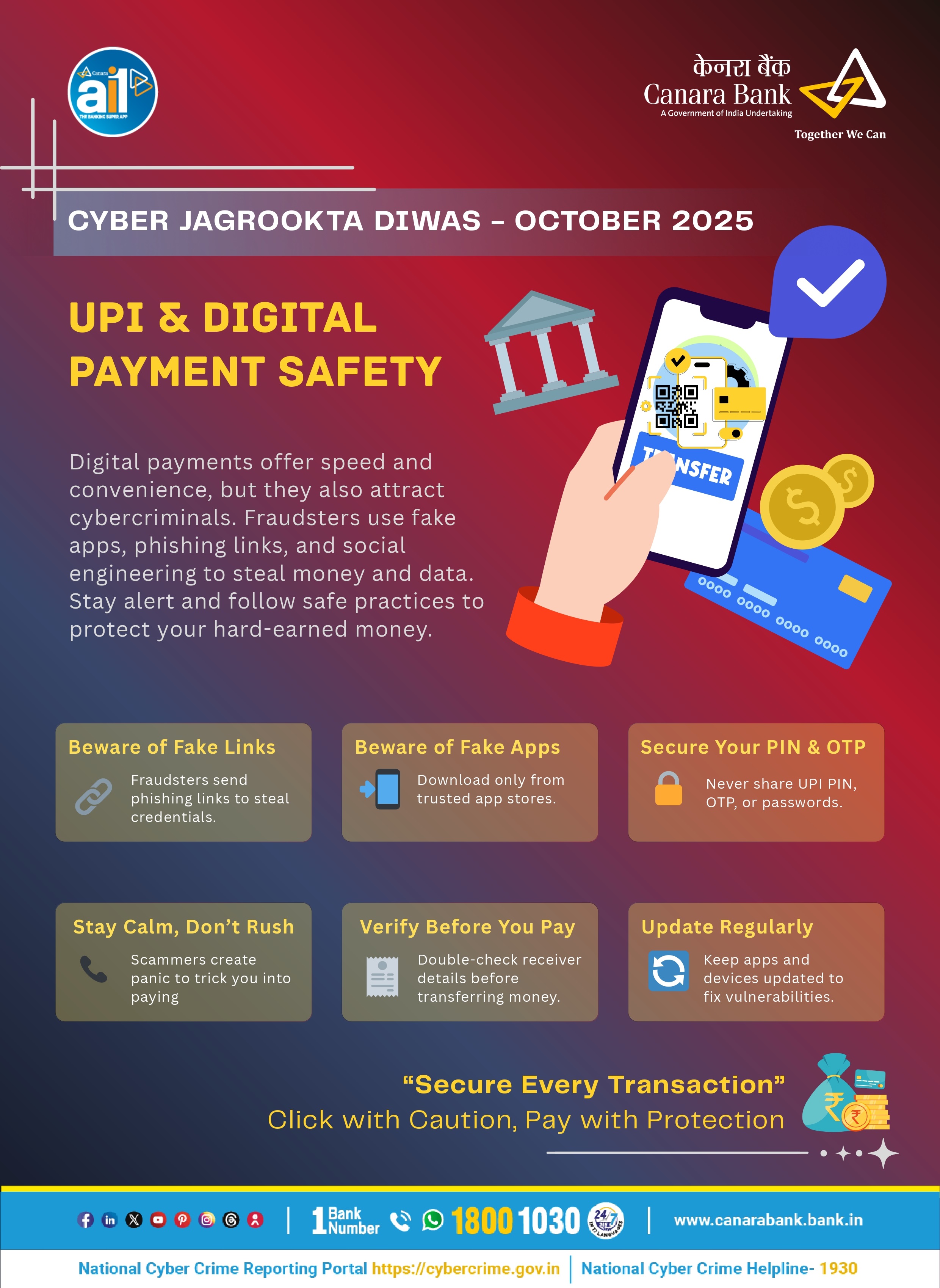 - Stay informed about different types of cyber frauds, phishing techniques, and common online scams.