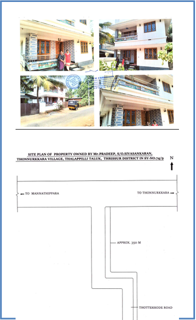 Property Details:4.05 ares and the residential building comprised in Re.Sy.No. 560/10-1-3, Block no.33 in Manarcadu Village, Kottayam Taluk, Kottayam